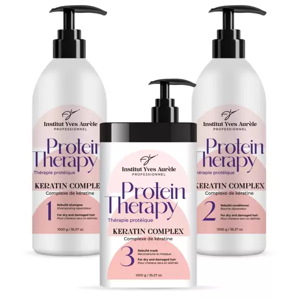 Protein therapy kaukė (1000g): Aqua, Cetearyl Alcohol, Behentrimonium Chloride, Glycerin, Hydrolyzed Silk, Hydrolyzed Keratin, Cyclopentasiloxane, Dimethiconol, Aloe Barbadensis Leaf Juice, Panthenol, Parfum, Isopropyl Alcohol, Phenoxyethanol, Ethylhexylglycerin, Citric Acid, Imidazolidinyl Urea, Methylchloroisothiazolinone, Methylisothiazolinone, Sodium Benzoate, Potassium Sorbate, Methylparaben, Ethylparaben, Propylparaben, Butylparaben.