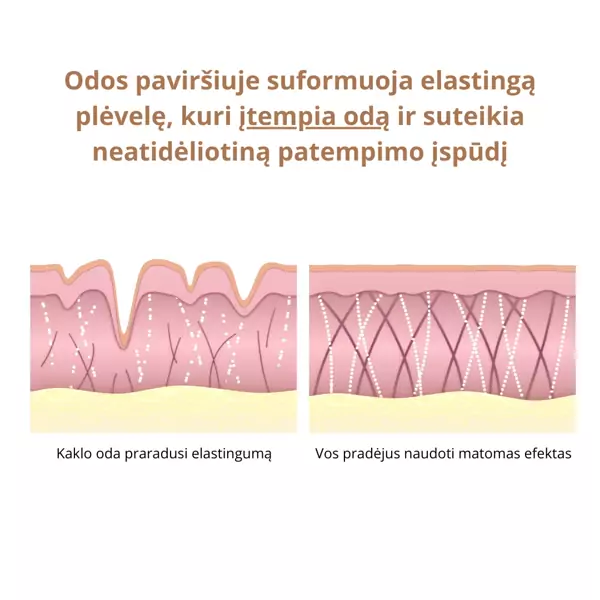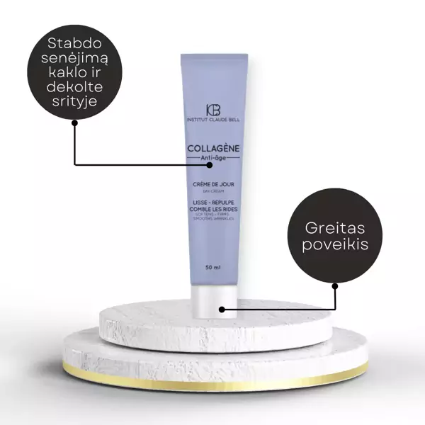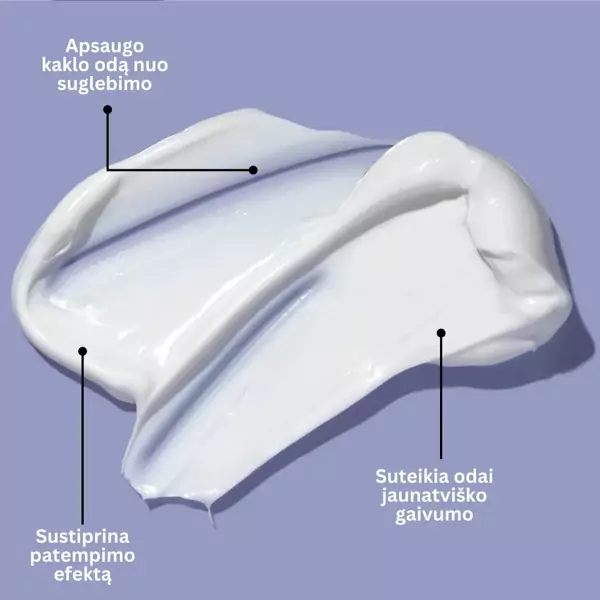 Kolagenas – tai raukšlių susidarymą stabdantis baltymas, padedantis odai išlikti stangriai ir elastingai. Šioje priemonėje yra dvi veikliosios medžiagos: